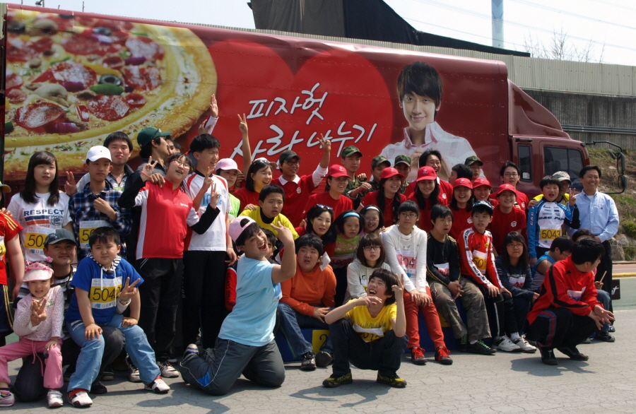 한국 피자헛(유)(www.pizzahut.co.kr 이승일 대표)은 지난 11일 열린 ‘제 3회 전국 장애인과 비장애인이 함께하는 두리두리 인라인 마라톤 대회”에 즉석에서 피자 조리가 가능한 ‘사랑 나누기’ 차량을 동원해 피자 100판을 기부하고, 임직원들은 행사장내 봉사활동을 펼쳤다.