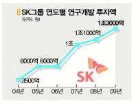 SK는 우선 올해 1조 3000억원을 연구개발에 투자하기로 했다. 이는 지난해 R&D 투자규모(1조 1000억원)보다 18% 늘어난 사상 최대 규모이다. 2004년 SK그룹의 R&D 투자규모가 3500억원 수준이었던 점을 고려하면 5년 만에 그룹 R&D 투자규모가 4배 가까이 늘어난 셈이다.