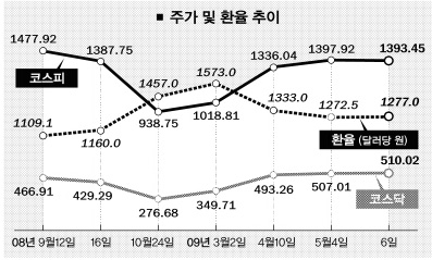 코스닥지수는 전 거래일보다 3.01포인트(0.59%) 오른 510.02에 거래를 마쳤다. 한때 300선이 무너졌던 코스닥지수는 이미 리먼브러더스 파산 직전인 지난해 9월12일(466.91) 수준을 웃돌고 있다.