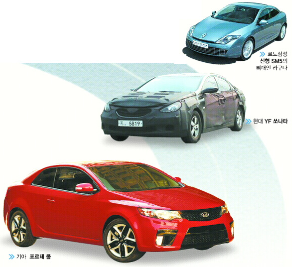 르노삼성의 ‘스테디 셀러’인 SM5는 올해 말 3세대 모델인 ‘L43(프로젝트명)’으로 교체된다. YF쏘나타와의 치열한 격돌이 예상된다. L43은 닛산 대신 르노 라구나의 뼈대를 기본으로 했다.