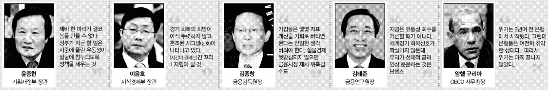 최근 풍부한 시중 유동성(자금)에 따라 경제위기의 삭풍(朔風)은 점차 잦아드는 분위기다. 그러나 정작 실물경기의 ‘꽃망울’은 아직 터지지 않고 있다. 조심스러운 낙관론을 펴던 정부도 신중론을 잇따라 내놓고 있다. 심지어 경기침체가 상당기간 이어지는 ‘엘(L)자형’ 경고마저 경제부처 수장(首長)의 입에서 나왔다.