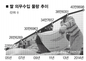 올해 초 1500원선을 돌파했던 원·달러 환율 역시 1200원대까지 떨어졌고 추가 하락도 예상돼 수입산 가격이 더 떨어질 여지가 있다. 국제 쌀 교역 가운데 중·단립종 비중은 10% 정도에 불과하다. 때문에 수급이 약간만 불안정해도 가격이 크게 변하는 시장이라는 점도 불안 요인이다.