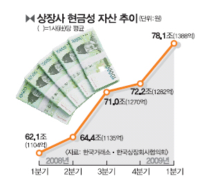 거래소는 “상장사의 현금성 자산이 늘어난 것은 경기 불확실성과 자금난 등으로 기업들이 자산 건전성을 유지하기 위해 현금을 내부에 쌓아두는 사례가 늘어난 데 따른 것”이라고 설명했다.