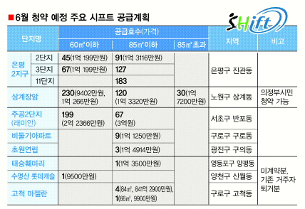 분기별로 공급되는 시프트는 올 8월에도 은평뉴타운, 신내지구, 장지지구, 마포 재건축 등에 1166가구가 공급될 예정이다. 11월에는 고덕, 방배, 서초 등에서 재건축 시프트만 263가구가 나온다.