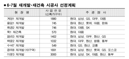 이달과 7월 2개월 동안 서울시내에서만 9개 정비구역에서 시공사를 선정하게 돼 있어 수주를 둘러싼 대형 건설사간 경쟁은 갈수록 치열해질 전망이다.