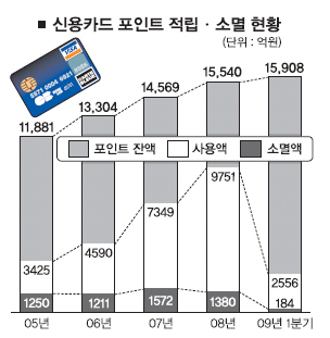 이 때문에 금감원은 포인트를 기부상품으로 연결시키는 방안을 모색하고 있다. 포인트 기부 상품은 이미 카드사들 대부분이 선보이고 있지만 지난 3월말 누계 기준으로 보면 기부액은 34억 3000만원에 불과하다. 한 해 1000억원 이상 사라지는데 비하면 3%에도 채 못 미치는 금액이다. 금감원은 이런 점을 감안해 사회복지단체에 포인트가 자동적으로 들어가는 기부 전용 카드를 개발하는 한편, 소액 기부도 가능해지도록 금액 제한도 없애기로 했다. 김영기 금감원 여신전문총괄팀장은 “소비자들이 잘 모르고 카드사들도 적극적으로 알리지 않아 활발하지 못한 포인트 기부를 절차 간소화와 홍보 강화 등을 통해 활성화할 방침”이라고 말했다.