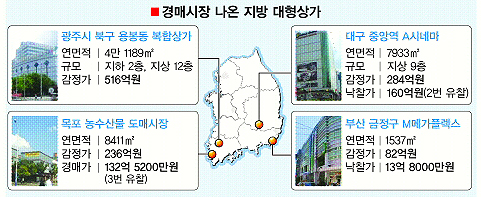 지방의 대규모 상가가 경매에 나오는 것은 대출금이 많은 지방상가의 경우 불황이 깊어지면 이자와 대출금 상환에 어려움을 겪기 때문이다.