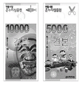 중소기업청은 18일 오는 8월1일 판매·유통예정인 전통시장 상품권 명칭을 ‘온누리 상품권’으로 확정했다고 밝혔다. 온누리는 전통시장 상품권을 전국에서 사용할 수 있다는 의미를 담고 있다. 100억원 규모로 발행되는 온누리 상품권 중 1만원권에는 전통의 의미를 살린 ‘탈’, 5000원권은 인정과 추억이 담긴 ‘뻥튀기’가 디자인돼 있다.