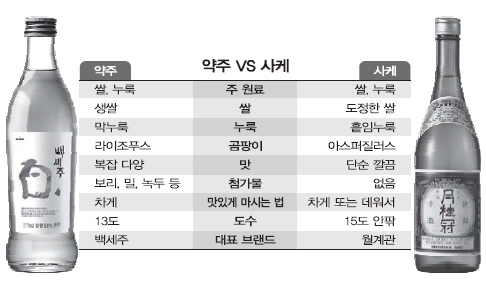약주 시장점유율 75%(매출액 기준)로 업계 1위인 국순당(브랜드 백세주) 측은 “사케도 약주처럼 쌀로 빚어 한국 음식과 잘 어울리는 데다 도수도 높지 않아 최근 몇 년새 한국시장을 부쩍 넓혔다.”면서 “그러나 사케가 주로 뺏은 시장은 약주가 아닌 와인”이라며 수성(守城)을 자신했다.