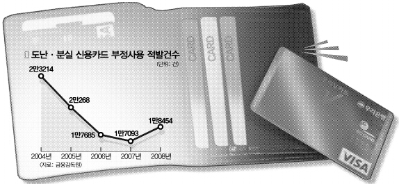 금융감독원에 따르면 올 3월말 현재 신용카드는 모두 9799만장 발급됐다. 신용카드 사용이 보편화되면서 지난 한 해 동안 도난·분실 신용카드를 사용하다 적발된 건수도 1만 8454건에 이른다.