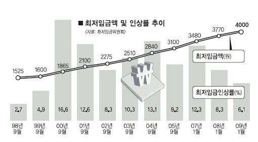 맞은편에 앉은 경영계는 “노동계의 20% 인상안은 기선 제압용일 뿐, 지난해 6.1% 올렸으니 올해도 결국 한 자릿수 인상을 요구할 것”이라고 짐작했다. 신경전 끝에 경영계가 먼저 타협안을 내놓았다. 2% 삭감안이었다.
