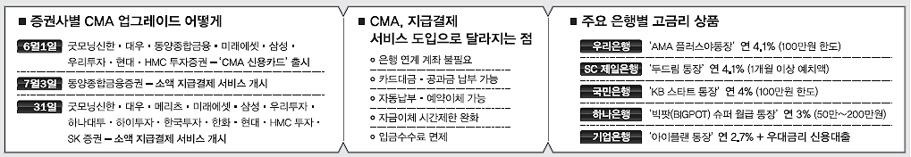 한 증권사 관계자는 “CMA의 단점이 사라진 만큼 소액 지급결제 서비스가 보편화되는 8월 이후부터 본격적인 고객 유치 경쟁이 벌어질 것”이라고 내다봤다.