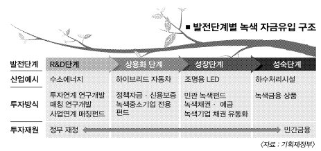 정부가 5일 발표한 ‘녹색투자 촉진을 위한 자금유입 원활화 방안’은 녹색 기술과 기업에 자금이 흘러들어갈 수 있는 환경과 제도를 만들기 위한 것이다. 제조업 중심의 우리 경제 체제를 지속 성장을 위한 녹색 경제 구조로 전환하고, 이를 위한 자금의 물길을 틔워 주겠다는 뜻이다.