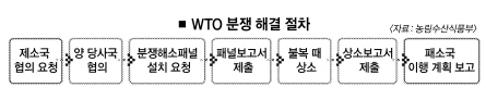 농식품부 관계자는 “패널 절차가 진행될 때도 양자가 합의만 하면 패널 절차는 종료되지만 가능성은 희박하다.”면서 “기존 판례들을 보면 승소 가능성이 높지 않지만 우리 법과 규정이 WTO에 합치된다는 점을 들어 적극 방어할 것”이라고 말했다.