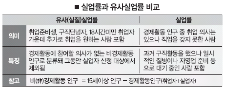 장 실장은 “유사실업자 증가는 구직단념자가 꾸준히 늘어나는 가운데 그동안 감소세를 지속하던 취업준비생이 경기회복 기대 등으로 증가세로 전환된 탓”이라고 설명했다.