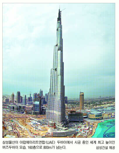 해외수주의 대표적인 분야는 초고층분야다. 세계 최고층 건축물인 UAE의 ‘버즈 두바이’ 시공으로 기술력과 시공능력을 인정받은 덕분에 많은 후광효과를 누리고 있다. 초고층빌딩 건립 계획이 있는 개발회사나 국가로부터 기술검토 의뢰가 들어오고 있다. 삼성물산은 향후 초고층 건설계획이 이어질 것으로 보고 1㎞가 넘는 극초고층 빌딩 시공 기술 개발에 나선 상태다.