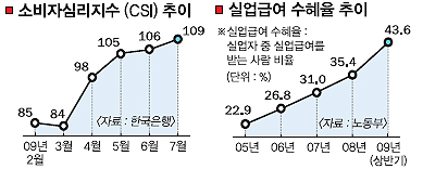 소비심리 7년만에 최고… 실업급여 신청은 다시 늘어