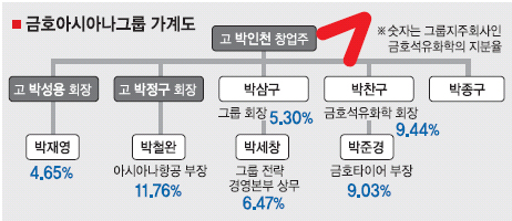 박삼구 회장이 동생 박찬구 석유화학 회장을 이사회에서 해임한 직접적인 원인은 박찬구 회장이 최근 금호산업 지분을 팔고, 석유화학 지분을 대량 매입했기 때문이다. 박찬구 회장은 대우건설이 4조원가량의 풋백옵션 부담을 지게 되자, 대우건설의 최대 주주인 금호산업 지분을 모두 팔아버렸다. 금호산업은 그룹의 법적 지주회사이고, 실질적인 지주회사는 석유화학이다.
