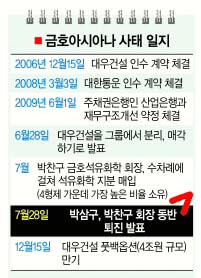 이번 금호아시아나그룹도 사태의 발단이 이와 매우 흡사하다. 표면적으로는 박찬구 회장이 4형제 간의 균등 지분율을 깨 가면서 석유화학 지분을 매입한 데 따른 응징 조치로 보이지만, 두 형제간의 갈등의 골은 상당히 깊었다.