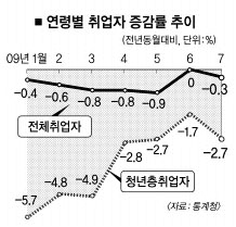 실업자도 7월 기준으로 전년 동월에 비해 15만 9000명 증가한 가운데 15~29세 청년층이 4만 5000명으로 증가 폭이 가장 컸다.