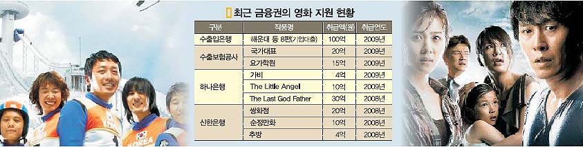 은행이 ‘충무로 큰손’으로 등장하고 있다. 과거 영화에 대한 직접투자나 대출은 위험이 크다는 이유로 보통 창업투자사나 캐피털, 저축은행 등 제2금융권의 몫이었지만 최근엔 시중은행은 물론 국책은행과 금융공기업들까지 영화산업에 대한 대출과 보증에 적극적으로 나서고 있다.