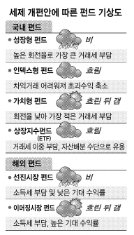 오대정 대우증권 WM리서치파트장은 “원금 회복 이전까지는 세제 혜택이 유효하지만, 원금 회복 이후에는 과세되는 만큼 기대 수익률이 낮은 선진국 펀드를 중심으로 투자 매력이 감소할 수밖에 없다.”면서 “추가 수익률이 예상되는 고성장 국가나 섹터를 중심으로 조정하는 게 바람직하다.”고 말했다.