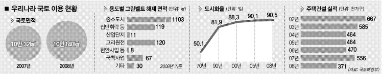 해제지역은 주로 신도시 개발, 국민임대주택 건설, 산업단지 조성 등에 쓰였다. 이로써 2008년 말 현재 그린벨트는 73%(3939㎢)만 남아 있는 것으로 조사됐다.