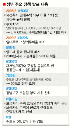 결국 정부는 민영부문 대책이 없다는 지적이 나오자 뒤늦게 보금자리주택 중대형 공급을 앞당기고 민영택지 분양가 상한제를 이번 정기국회에서 폐지하겠다는 대책을 꺼내 들기에 이르렀다.