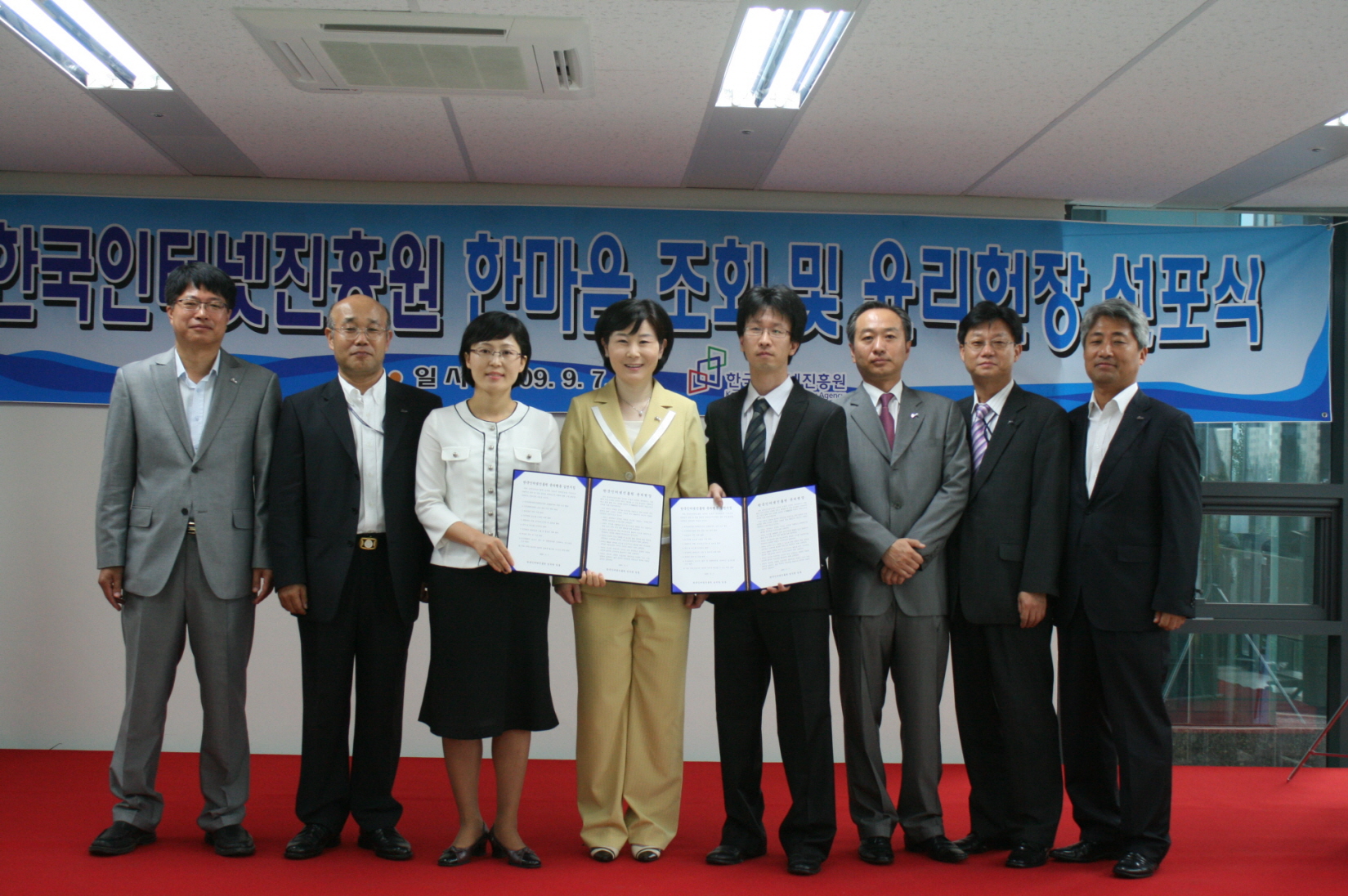 KISA는 또 ‘10가지 윤리행동 실천지침’을 선포했고, 이를 기반으로 ‘함께 다짐하고 서로 실천하는 행동강령’, ‘임직원이 앞장서는 윤리서명’, ‘윤리의 길라잡이! 퀴즈 교실’, ‘신나는 윤리포인트 쌓기’ 등을 통해 직무 윤리성과 투명성을 강화해 나갈 계획이다.