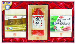 한성 젓갈제품은 미네랄 함량이 높은 전남 신안산 천일염으로 간을 했다. 젓갈 업계 최초로 HACCP 인증을 받았다. 유산균 소재와 무농약 고춧가루를 사용한 고급명란과 숭어알이 들어 있는 ‘젓갈眞세트’(30만원), 프리미엄 명란·창난에 진품백명란을 넣은 ‘젓갈蘭세트’(18만원), 젓갈특호세트(10만원), 한성통젓갈세트(6만 5000원), 젓갈특3호세트(5만 5000원) 등 가격대가 다양하다. 남도 특산품인 민물새우젓갈을 도자기에 담은 제품도 있다. 참치선물세트도 2만~8만원대에서 고를 수 있다.