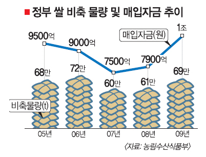 정부가 쌀 시장 안정을 위해 1조원의 벼 매입자금을 풀기로 했다. 당초 계획에 비해 800억원 정도 늘어난 규모다. 그러나 쌀 공급 초과에 따른 가격 하락이라는 고질적인 문제를 해결하기에는 역부족이라는 지적이 나오고 있다.
