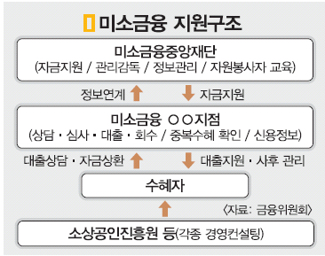 “서민들을 미소 짓게 하겠다.” 진동수 금융위원장은 지난 17일 정부가 올해 말부터 마이크로 크레디트 사업인 ‘미소(美少)금융’을 도입하기로 결정한 내용을 브리핑하면서 ‘미소’라는 단어가 새나갈까봐 조마조마했다고 소개했다. “마이크로 크레디트 같은 외국어보다 미소금융이라는 우리식 표현이 브랜드화할 수 있도록 언론에서 많아 도와 달라.”면서 “서민들을 미소 짓게 한다는 게 마이크로 크레디트하고 딱 맞는 말 아니냐.”고 말했다. 올 연말까지 20~30곳에 이어 내년부터 순차적으로 늘어날 미소금융 지점에 가면 어떤 일이 일어날까.