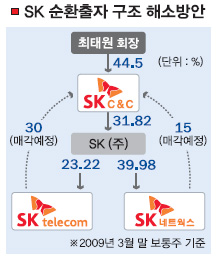 이런 순환출자 구조를 해소하기 위해 우선 SK텔레콤이 지난 18일 이사회에서 SK C&C 보유주식을 유가증권시장 상장을 통해 매각하기로 결의했다.