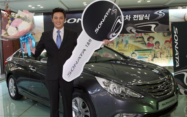 현대자동차는 신형 쏘나타의 1호차 주인공으로 영화배우 장동건씨를 선정하고 23일 전달 행사를 가졌다.