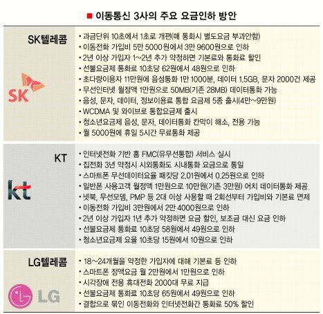 SK텔레콤 고객은 1초 단위 과금, 가입비 인하, 장기가입자 할인, 선불요금 인하, 무선인터넷 정액요금 사용량 확대 등을 눈여겨봐야 한다.