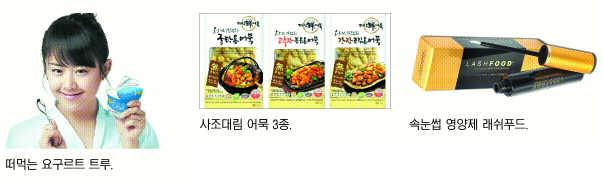 ●눈썹 영양제 최초로 미국 식품의약품안전국(FDA) 승인을 거친 래쉬푸드가 국내에 출시됐다. 16가지 자연식물 추출물을 주성분으로 해 약하고 잘 빠지는 눈썹을 건강하게 만들고, 속눈썹 모근에 영양을 공급해 길고 굵고 풍성한 속눈썹을 만드는 제품이라는 설명이다. 2008 에미상 시상식과 2009년 아카데미 시상식 공식후원제품으로, 국내에서는 롯데백화점 강남점과 분당점에 입점했다. 래쉬푸드는 지역별 판매총판과 취급점을 모집하고 있다. 대리점 문의 (02)2152-3152. www.lashfoodkorea.com.