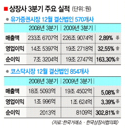 상장사들의 3·4분기 실적이 올해 들어 처음 지난해보다 나아졌다.