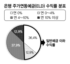 안정성과 수익성이란 두 마리 토끼를 잡을 수 있다는 은행 주가지수연동예금(ELD) 투자자의 절반은 1년 동안 정기예금에 넣었던 사람보다도 못한 수익을 올렸다. 특히 지난 1년간 판매된 상품 3개 중 1개는 수익률이 제로(0%)였다.