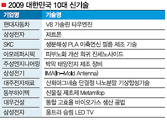 국무총리상 수상작으로는 삼성전자가 개발한 신개념 풀터치 스크린폰 ‘제트폰’과 SKC의 생분해성 필름 제조기술, 아모레퍼시픽의 홍삼 속 ‘진세노사이드’의 주름 개선 기술이 뽑혔다. 이 밖에 동부하이텍이 개발한 고부가가치 신물질 제초제, 대우건설의 통합 고효율 바이오가스 생산 공법 등도 10대 신기술에 선정됐다. 올해 10대 신기술로 선정된 제품의 매출액은 7조 1000억원 규모이며 내년 매출액은 11조 3000억원으로 전망된다.