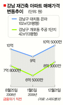 10여년 전 경제위기 때 겪은 학습효과로 강남 재건축 지역을 중심으로 1년만에 집값이 회복되면서 ‘강남 불패’를 다시 한번 확인했다. 20 08년 12월 말 대비 서울·수도권 재건축 아파트의 매매가는 각각 7.1%, 4.1% 상승했다. 특히 연초 주택경기 활성화를 위해 각종 규제가 풀리자 투자자들의 자금이 몰리면서 버블마저 우려됐다.