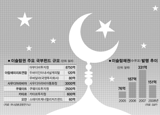 우리나라의 몫이 된 400억달러(47조원)짜리 아랍에미리트연합(UAE) 원전 공사 발주는 ‘오일머니’를 바탕으로 거침없이 뻗고 있는 이슬람의 경제력을 뚜렷이 보여준 사건이었다. UAE의 국부펀드인 아부다비투자청이 운용하는 자산만도 우리나라 한 해 국내총생산(GDP) 규모에 근접하는 8750억달러에 이른다. 각국이 너도나도 이슬람 자본 유치에 발벗고 나선 이유다.