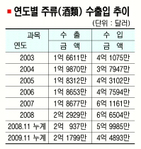 11월까지 508만弗… 전체 주류수입은 급감