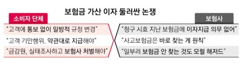 문제는 이렇듯 비슷한 민원이 잇따르고 있는데도 금융 당국도 해결책을 내놓지 못하는 데 있다. 논란을 잠재우기 위해 청구 기간과 상관없이 가산 이자를 주겠다고 한 보험사가 있는 반면 일부 보험사는 법상 청구 기간이 지난 보험금에 대해 가산 이자까지 지급하는 것은 말이 안 된다며 버티고 있다. 명확한 가이드라인이 필요하다는 지적이 나온다.
