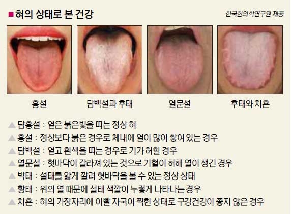 한의학에서 혀는 심장과 연관이 있고 비장과 위의 상태가 드러나는 곳이다. 따라서 혀를 보고 건강 상태와 병을 진단하는 설진(舌診)이 매우 중요하다. 현대의학에서도 혀에 생기는 설태를 보고 구강건강을 판단하기도 한다.