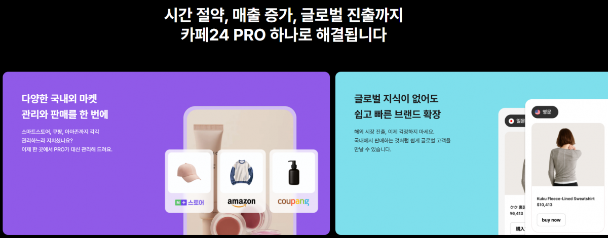 - 카페24 PRO 글로벌, K-셀러의 글로벌 시장 진출 가속화 지원 - 복잡한 통관·번역·물류 장벽 허물고 ‘자사 브랜드 중심’ 글로벌 운영 지원 - 쇼피 입점 쉬워지고, 해외 CRM 자동운영으로 구매 전환율 높여