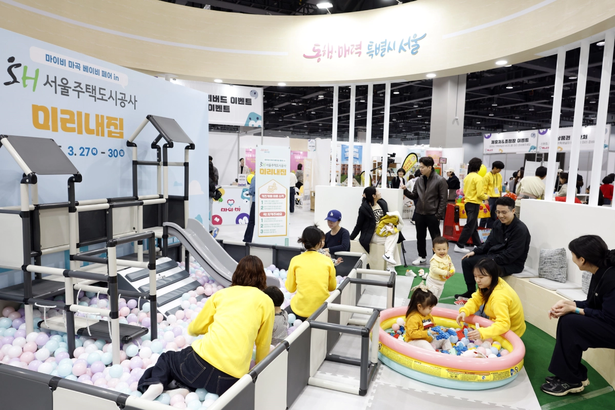 지난해 3월 서울 강서구 마곡동 코엑스마곡에서 열린 베이비 페어에 마련된 서울주택도시개발공사(SH)의 ‘미리내집’ 부스. 아이를 동반한 가족 참가자들이 볼풀 놀이방에서 즐거운 시간을 보내고 있다.