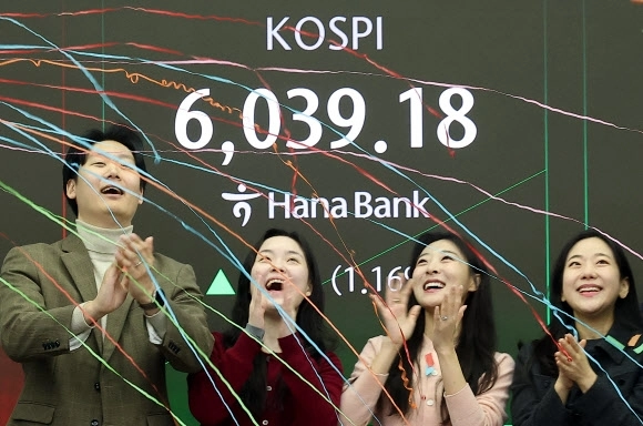 지수는 전장 대비 53.06포인트(0.89%) 오른 6022.70으로 출발해 개장과 동시에 ‘6000피’를 달성했다. 이후 잠시 주춤하며 6000선 밑으로 내려가기도 했지만, 다시 상승세를 키워 한때 6144.71까지 올랐다.