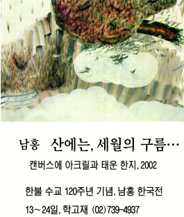 사설·오피니언 [그림과 詩가 있는 아침] 세월의 구름/남홍 입력 2007-02-10 00:00 수정 2007-02-10 00:00 기사 읽어주기 다시듣기 글씨 크기 조절 글자크기 설정 닫기 글자크기 설정 시 다른 기사의 본문도 동일하게 적용 됩니다. 가 가 가 가 가 프린트 공유하기 공유 닫기 페이스북 네이버블로그 엑스 카카오톡 밴드 https://www.seoul.co.kr/news/editOpinion/2007/02/10/20070210022006 URL 복사 댓글 0 이미지 확대 닫기 이미지 확대 보기 산의 침묵이 메아리치는구나!고독과 고요의 아우성 속에서 사라진 자는산이 되어가고생명은 잉태되어 세월의 구름 되어한 번 더 바라보고 싶던그 하늘 아래 초연히 노니는구나! 2007-02-10 22면 Copyright ⓒ 서울신문 All rights reserved. 무단 전재-재배포, AI 학습 및 활용 금지