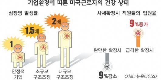신문에 따르면 미국에서도 ‘칼퇴근’은 옛말이다.오후 5시에 퇴근했다가는 일에 전력투구하지 않는다는 비난을 면치 못한다.어려운 기업환경에서 아웃소싱이나 구조조정,사세확장 등이 근로자에겐 스트레스로 이어진다.