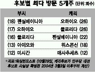 선거 총책인 칼 로브는 “케리 후보가 이기려면 오하이오, 펜실베이니아, 미시간, 위스콘신, 미네소타를 모두 이겨야 한다.”며 승리를 장담했다.